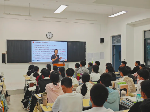 “屏幕后的陷阱”“开盒的代价”“虚拟世界的真实枷锁”……一个个生动的网络失范案例瞬间吸引了同学们的注意,从网络诈骗,到隐私泄露,再到网络暴力,孟哲昱结合最新典型案例,深入浅出地讲解了与未成年人息息相关的网络法律知识,深刻揭示了网络世界的“AB面”,帮助同学们提高网络辨别能力和法律意识,做文明的“网络原住民”。授课现场气氛热烈,同学们踊跃互动,孟哲昱耐心倾听同学们的每一个问题,结合案例逐一解答,将原本严肃的法律知识变得生动有趣,同学们在轻松的氛围中掌握了法律知识。