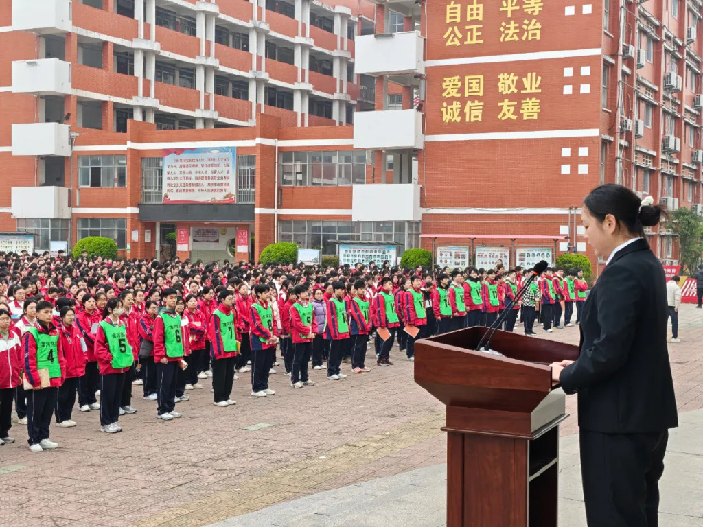 为进一步加强青少年法治教育,有效预防和遏制校园欺凌,营造安全、文明、和谐的校园环境,3月16日,漯河中院民一庭法官助理蒋丽婷走进漯河四高,开展以“拒绝校园欺凌,守护平安校园”为主题的法治宣传教育活动,为全校师生送上一堂生动而深刻的法治课。