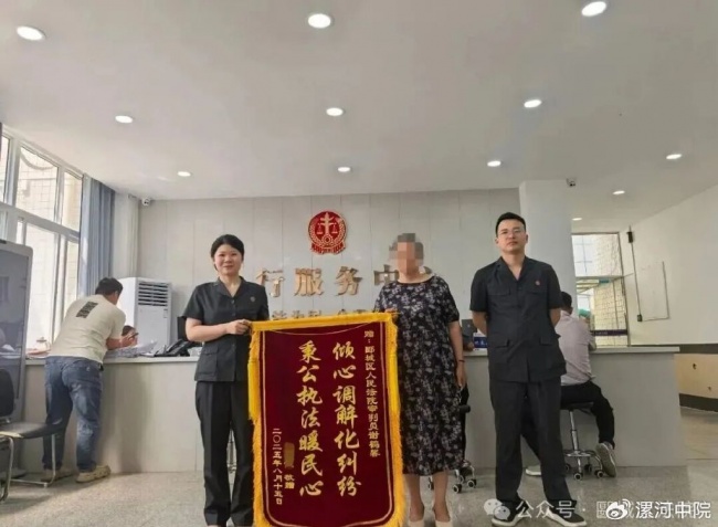 近日,一面写有“倾心调解化纠纷 秉公执法暖民心”的锦旗,被当事人郑重送到郾城区人民法院龙塔人民法庭庭长谢鹤馨手中。这面“走心”的锦旗,既是对谢鹤馨法官“用心”办案的肯定,更是郾城区法院践行司法为民宗旨的生动写照。 此前,一起意外火灾不仅造成当事人财产损失,更让涉事双方矛..